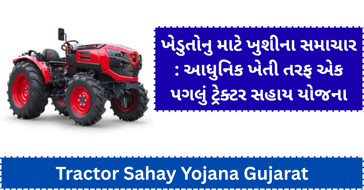 ગુજરાત સરકાર સતત ખેડૂતોના વિકાસ માટે અનેક યોજનાઓ લઇને આવે છે, અને એ જ શ્રેણીમાં એક મહત્વપૂર્ણ યોજના છે ટ્રેક્ટર સહાય યોજના. ખેડૂત માટે ટ્રેક્ટર માત્ર એક વાહન નથી પરંતુ તેમની ખેતીને ઝડપ, શક્તિ અને આધુનિક બનાવતું મુખ્ય સાધન છે. આ યોજના હેઠળ ખેડૂતોને ટ્રેક્ટર ખરીદવા માટે સબસિડી આપવામાં આવે છે જેથી તેઓ નવી ટેકનોલોજી અપનાવી શકે અને તેમની ઉત્પાદન ક્ષમતા વધારી શકે.