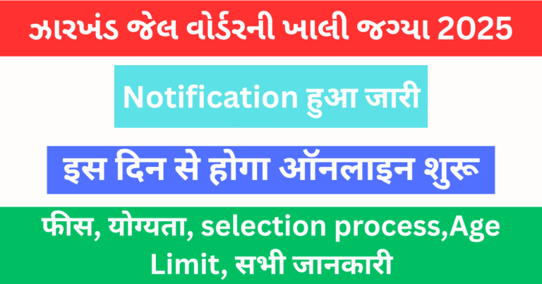 ઝારખંડ સરકાર દ્વારા જેલ વોર્ડર ભરતી 2025 માટે નોટિફિકેશન બહાર પાડવામાં આવ્યું છે. આ ભરતી હેઠળ કુલ 1,733 પોસ્ટ્સ પર …